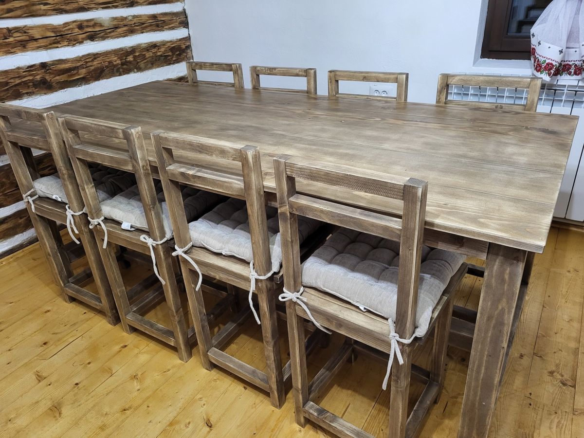 Podelele sunt din lemn masiv, tip dușumea, iar mobilierul este realizat integral din lemn, dorindu-se, pe cât posibil, utilizarea unor materiale naturale.