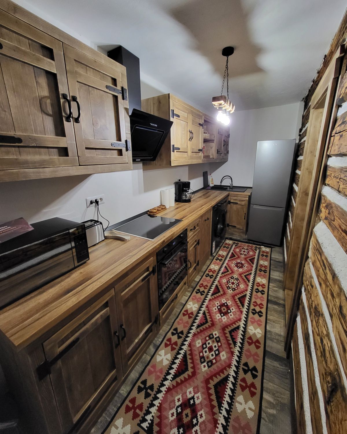 Vechea sobă cu plită și cuptor, la care s-au încălzit și au gătit atâtea generații, a fost păstrată, chiar dacă doar cu scop decorativ, din considerente de siguranță.