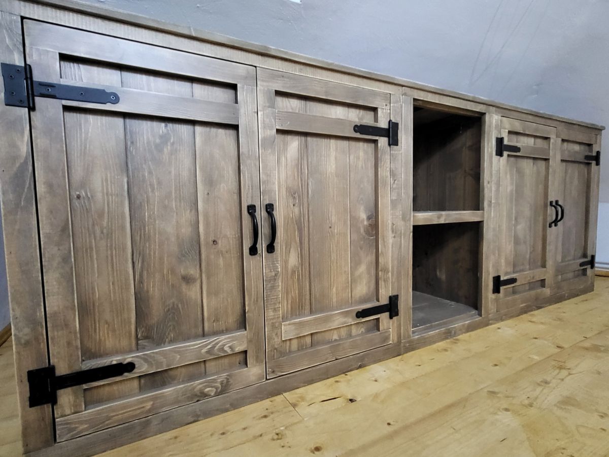 Lemnul vechi a fost curățat, șlefuit și tratat împotriva degradării, apoi protejat cu ulei de in — o alegere care păstrează caracterul natural al materialului.